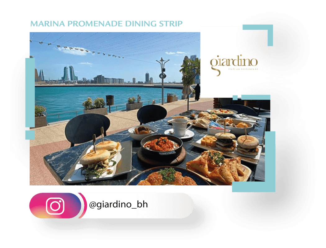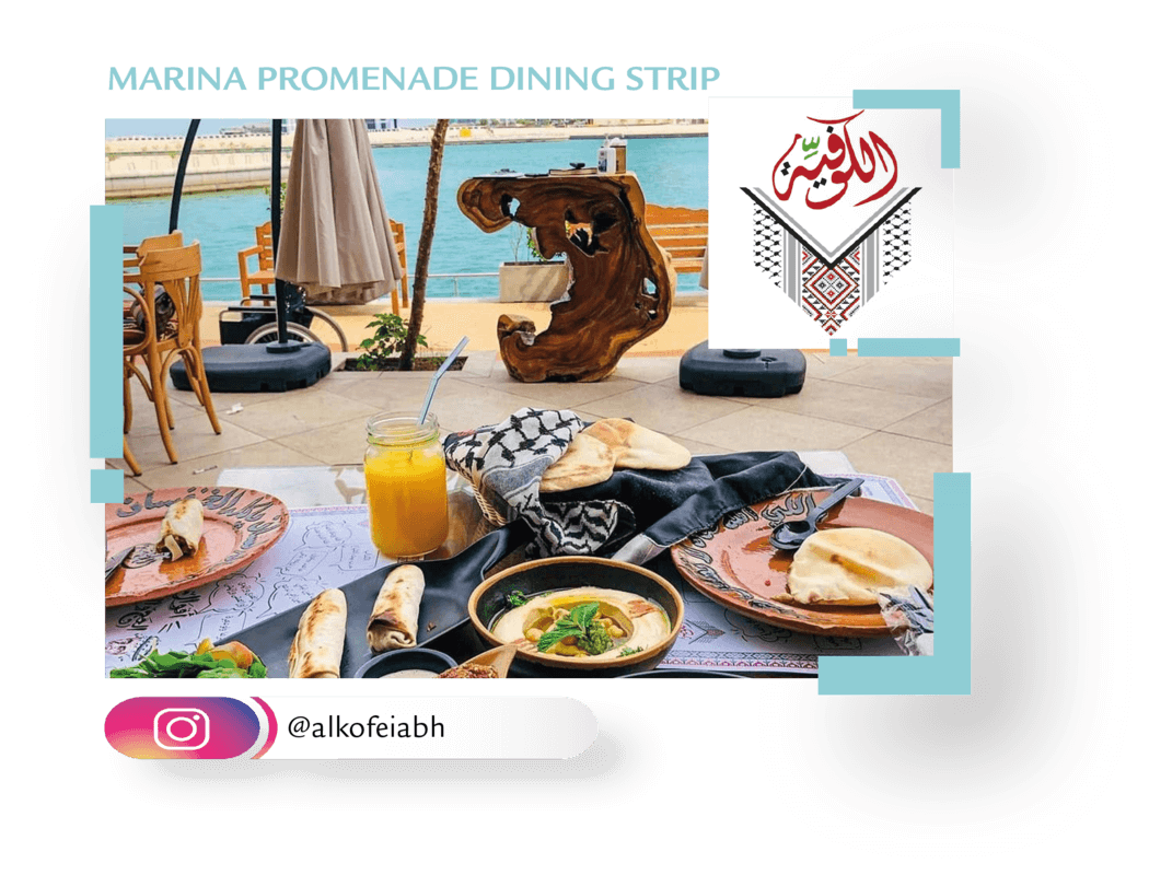 bordering the whole marina until the City Beach resulting in a dynamic and fascinating waterfront area. The Marina Promenade Dining Strip is adjacent to the popular events venue Festivals Garden, which is hosting events, festivals with live music, arts, exhibitions and markets. Beautiful and engaging shows can be enjoyed by visitors and restaurants patrons from the comfort of their dining seats while Block 3S visitors may unwind by the water while enjoying shisha, food, and beverages at the terrace coffee shops and lounges dining experiences.